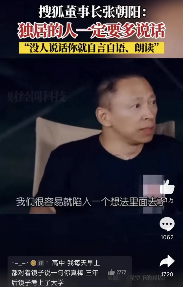 也有一些网友对张朝阳的这个观点表示肯定,比如“这倒是真的,独居久了感觉自己说话都不利索了”、“所以我搞了个智能音箱没事就聊聊天”。当然也有一些网友并不赞同他的说法,类似“独居又不是不上班,又不是没朋友”、“疯子一般都自言自语”这样的反对声音在评论区也有不少。