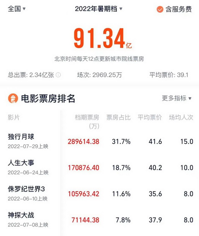 失去的观众要挽回,新的观众要培养,电影市场恢复迟缓,电影要承载的使命实在太多,一部不到30亿票房的《独行月球》不够,三个月的暑期档组成的一个夏天,也远远不够。