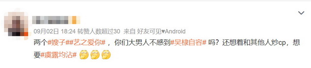 一段广为流传的话是,“吴露可逃目前为止没有双人采访没有双人综艺没有双人扫楼没有双人杂志……一切都是朕执意要嗑的,那么在意的话承认吧,你也被CP感所吸引。”