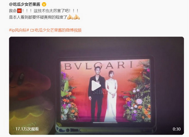 在王鹤棣和虞书欣的CP超话“棣欣引力”,和吴磊和赵露思的CP超话“吴露可逃”里,这五个字都会高频出现。跟在这句话下方的,往往是粉丝们PS的合照、在物料里找到的、证明“两人可能在谈”的所谓“糖点”,“吴露可逃”粉丝甚至做出了一个两人在宝格丽活动上同框的视频,以假乱真。