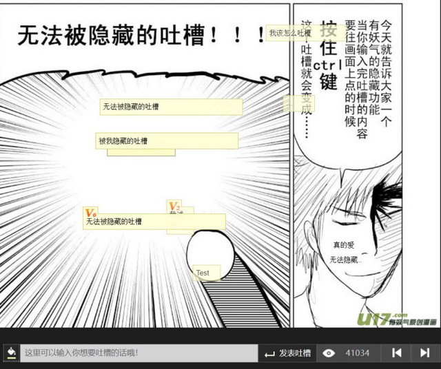 除了凭内容吸引漫迷们和漫画家们向互联网迁徙,有妖气还有身为互联网平台的一些独特玩法,比如吐槽功能和配音玩法。