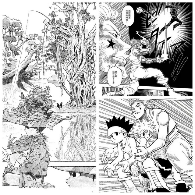 与传统的日本漫画不同,《猎人》虽然以主人公小杰寻找父亲金作为主线,故事的展开却是多位人物、多重故事线穿插并进,有条不紊中铺陈一整个庞大的世界观。热血战斗番最经典的便是对战斗场景的刻画,在这方面,《猎人》重逻辑、擅智斗,搭配巧妙的分镜,常给读者耳目一新的感觉。
