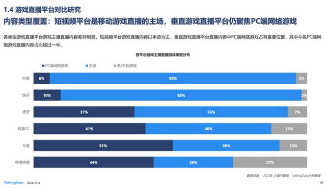 更何况,虎牙斗鱼等单一直播平台,实际上兴起于端游火爆的年代,在手游直播上相较于新兴平台更加乏力。报告显示,虎牙、斗鱼、B站在端游直播市场中仍占据重要位置,热门游戏中耳熟能详的大主播们基本都在此。