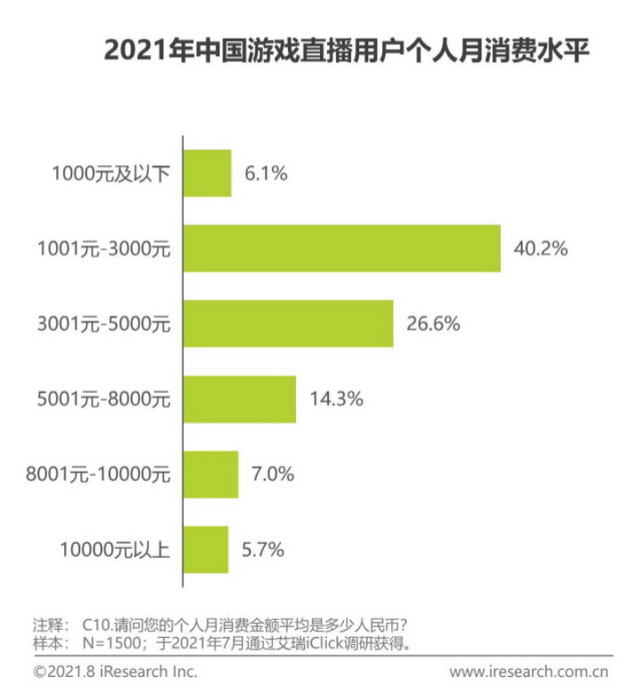 因此,这种收入模式本身就具有极大的不确定性。据艾瑞咨询《2021年中国游戏直播行业研究报告》显示,2021年中国游戏直播用户中,40.2%的人月消费水平仅在1001-3000元之间。