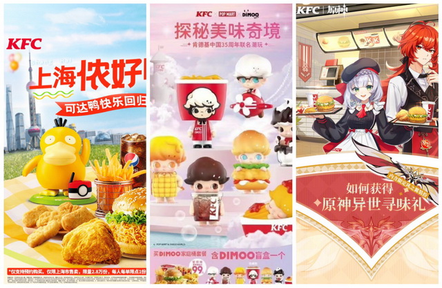 实际上,可达鸭的火爆,对肯德基来说也并非稀罕事。这件事往前数,肯德基层凭借跟泡泡玛特盲盒联动而将餐品在二手市场卖出了8倍的价格。再往前,肯德基还比必胜客更早就与国产二次元手游原神联动,在当时就贡献了不少名场面。