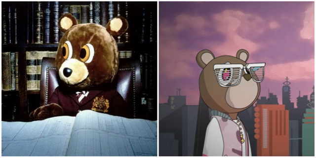 他在《Graduation》专辑中与日本知名艺术家村上隆合作,强化了他在《大学三部曲》中延续的“辍学熊”形象,同时他在《Graduation》里的百叶窗眼镜,成为当年流行全球的时尚单品潮品。不同于其他嘻哈歌手的宽松装扮,他喜欢穿高奢品牌的修身西装,把自己称为LOUIS VUITTON DON——后来还真的为LV设计了一款以这个绰号命名的鞋。