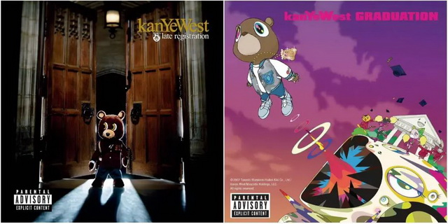 此后,Kanye分别于2005年和2007年发布的两张专辑,延续着“学院派”风格,构成了“大学三部曲”,分别是《延迟注册》(《Late Registration》)和《毕业》(《Graduation》)。