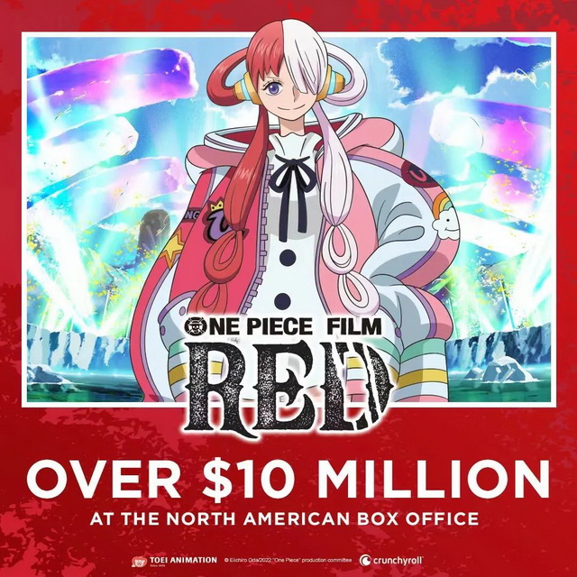据The-Numbers统计,《海贼王:红》在零点场共进账170万美元,逊于《龙珠超 超级英雄》(430万美元)和《咒术回战0剧场版》(288万美元)的同期数字。