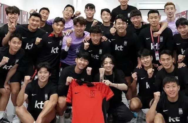 即便是世界顶流,在世界杯的语境下,与自己的国家队合影,都会有一种追星的心态,期盼并祝福他们取得好成绩,成了更重要的事:在表演当天,田柾国去见了出征世界杯的韩国足球队,并于随后上传了合照。他后来在直播中坦言,这是“比自己上开幕式舞台更紧张的事情”。