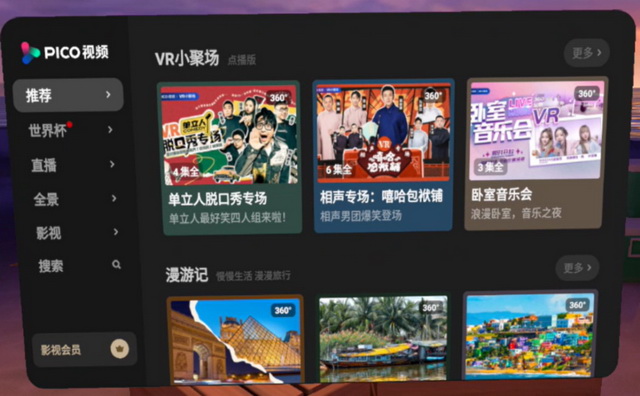 在世界范围内,游戏都是用户对VR设备的最主要需求。不过,游戏生产的周期太长,尤其是VR游戏所需的技术能力与移动端或PC端都大不相同,而国内此前也并未在这一领域积累多少技术人才,因此短时间内难有突破。但在游戏之外,文娱影音类内容的生产周期就短了很多,也是PICO目前在内容生态上主要发力的方向。