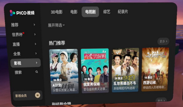 而VR观看影音内容的主要优势在于立体感,相当于有了一副自带的3D眼镜,不过在今年的世界杯直播中,完全只是2D画面的大屏版本,实际效果和投屏看比赛没有太大差别。总得来说,形式大于内容,缺乏实际意义。