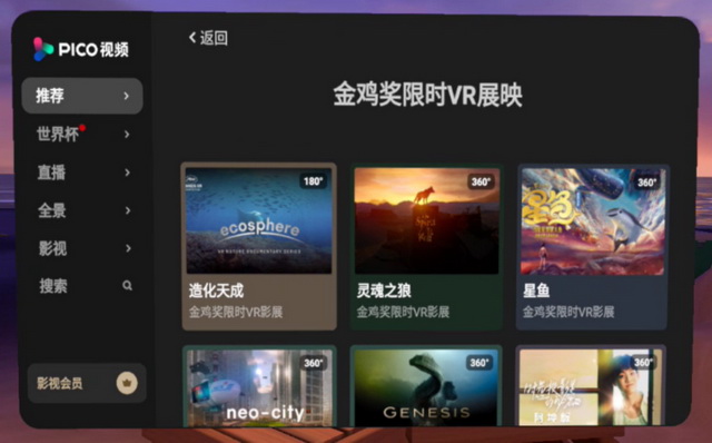 今年的金鸡百花电影节上,金鸡官方与PICO合作了一个VR影展,影展中的九部影片目前都可以在PICO当中免费观看。