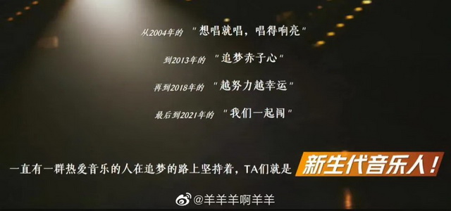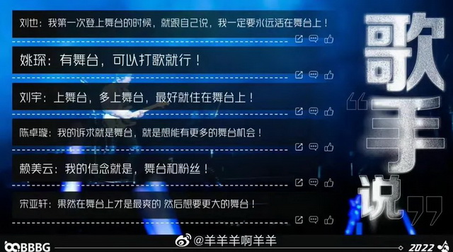 4月,总导演、制作人羊羊(@羊羊羊啊羊羊)更新微博,向网友提问“是否期待艺人凭借自己实力获得一个真正的舞台?”