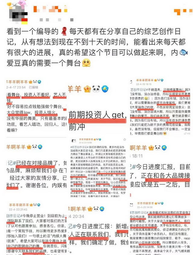 在筹备节目的五个月时间里,羊羊不断更新“综艺创作日记”,从确定艺人数量、和品牌方洽谈合作,到落地平台,每一个环节都在日记中向网友汇报,关注他的网友也越来越多。