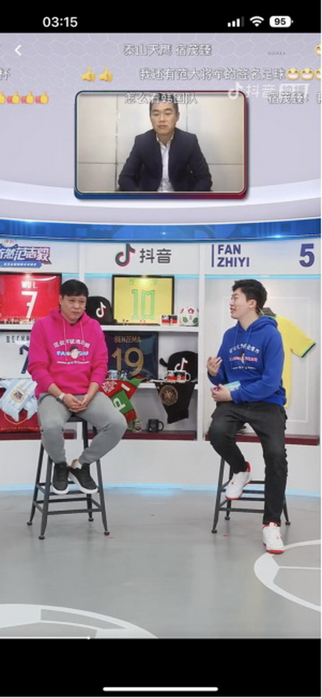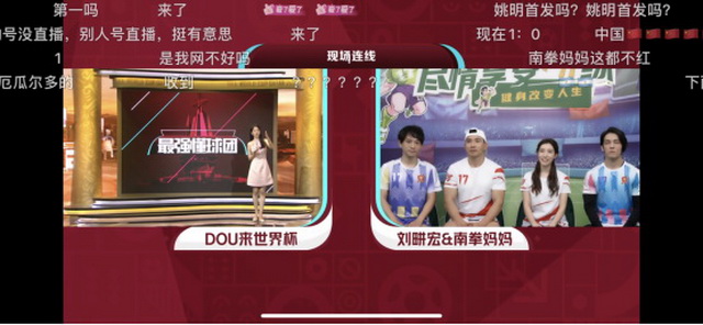 譬如由抖音官方打造的《DOU来世界杯》、《黄家足球班》在比赛间歇播出。前者请到了段暄、张路两位《天下足球》时期的名嘴担当主持,除了比赛评论以外,还与大量抖音原生网红进行连麦,刘畊宏、大能、小宇等知名红人皆在此列,他们还通过在账号发布预告短视频来为节目增加热度。
