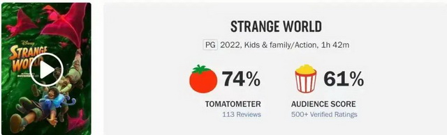 从口碑来看,《奇异世界》烂番茄新鲜度只有74%,表征观众喜好度的爆米花指数更低至61%。即便自7月底的《DC萌宠特遣队》以来,甚少高投资动画电影投放院线,但《奇异世界》并未利用市场空档有所斩获,感恩节后的走势堪忧。