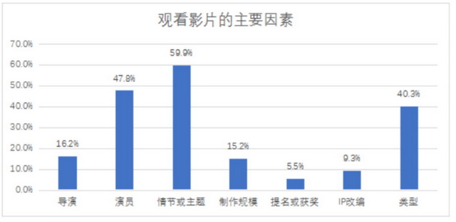 目前来看,剧情是国内大部分观众最为关注的评判维度。据中国电影报《2021中国电影观众调查报告》显示,近60%的观众认为其观看影片的主要因素是“情节或主题”,而“演员”和“类型”这些常规的考虑维度都还在其次。