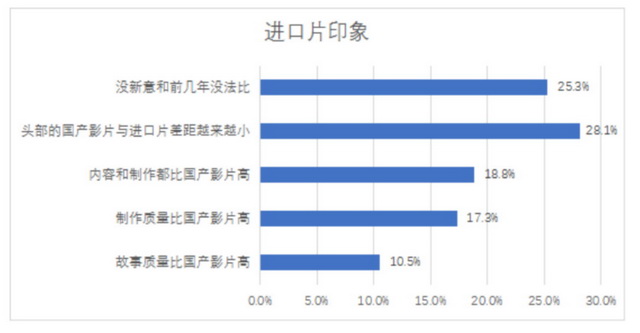 这也是近两年来,进口片总体表现越来越差的“病根”所在。据《2021中国电影观众调查报告》显示,认为“进口片故事质量比国产影片高”的观众,仅有10.5%,更多的观众认为“头部的国产影片与进口片差距越来越小”。