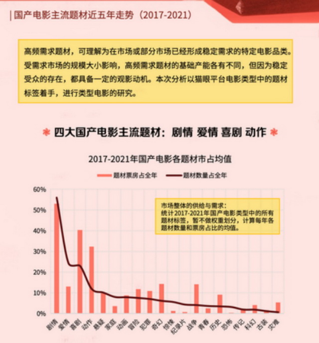 《2021中国电影观众调查报告》也显示,仅40%的观众将“类型”视作观看影片的主要因素,“情节或主题”和“演员”优先级都排在“类型”之前。这其实涉及到国内类型片发展的本质问题,作为一个舶来的概念,国内电影市场和电影观众都没有经历好莱坞的发展历程,对类型片的认知自然也不可能等同——创作者不能只按书上教的规律按图索骥,也要充分了解并结合当下的市场现状。