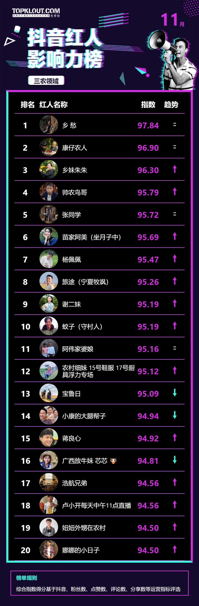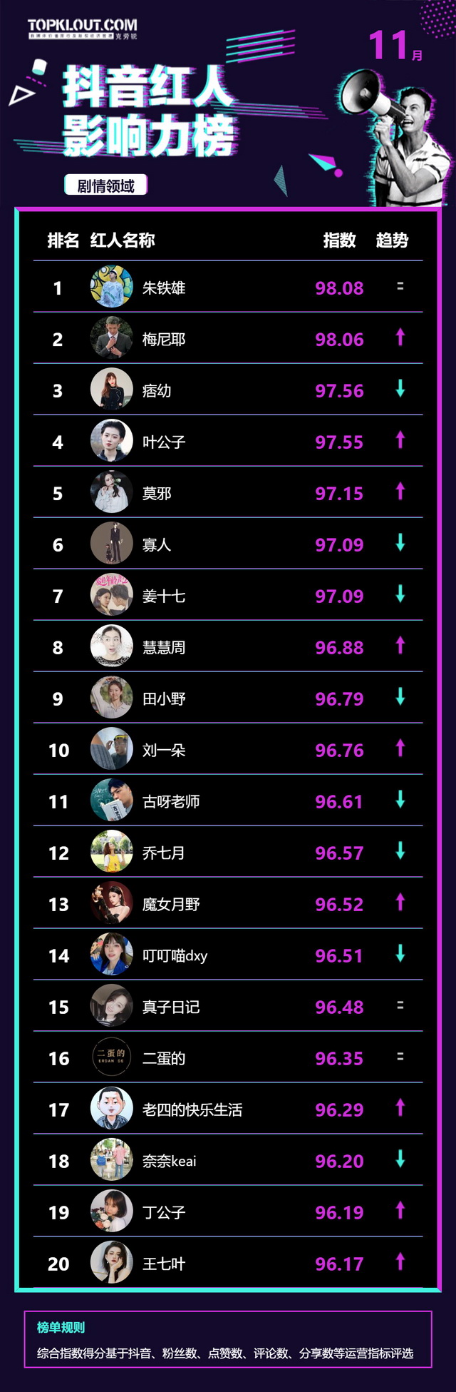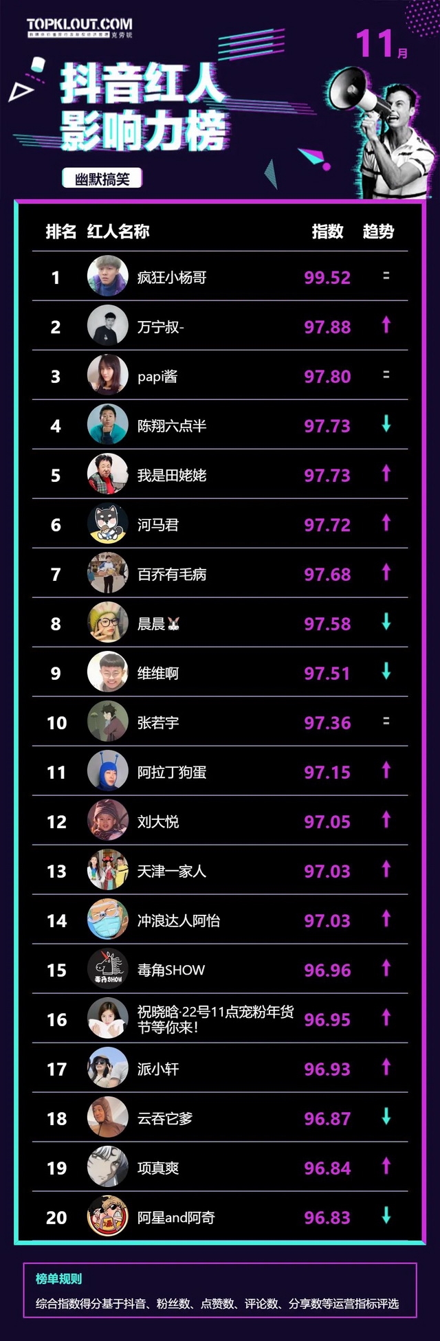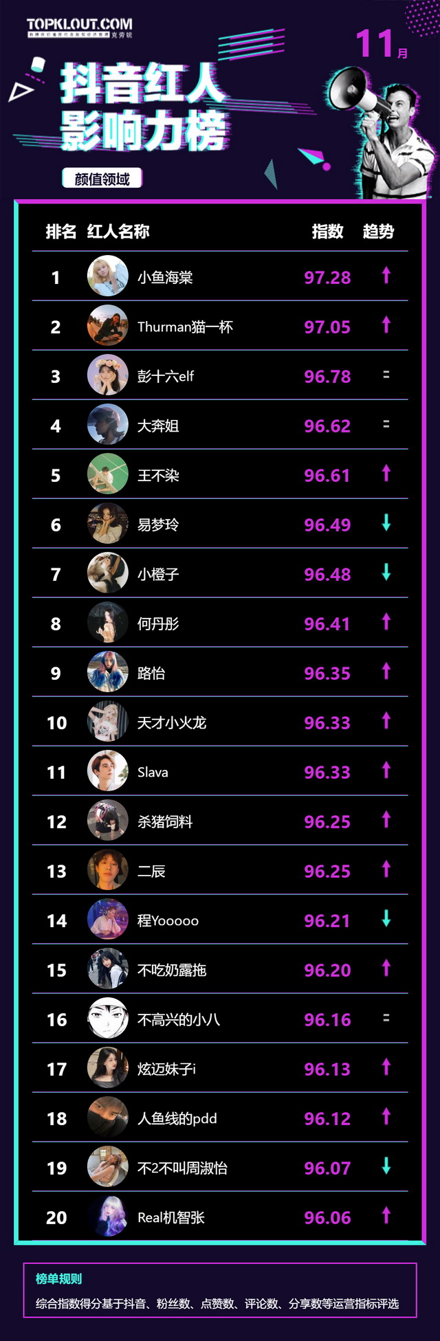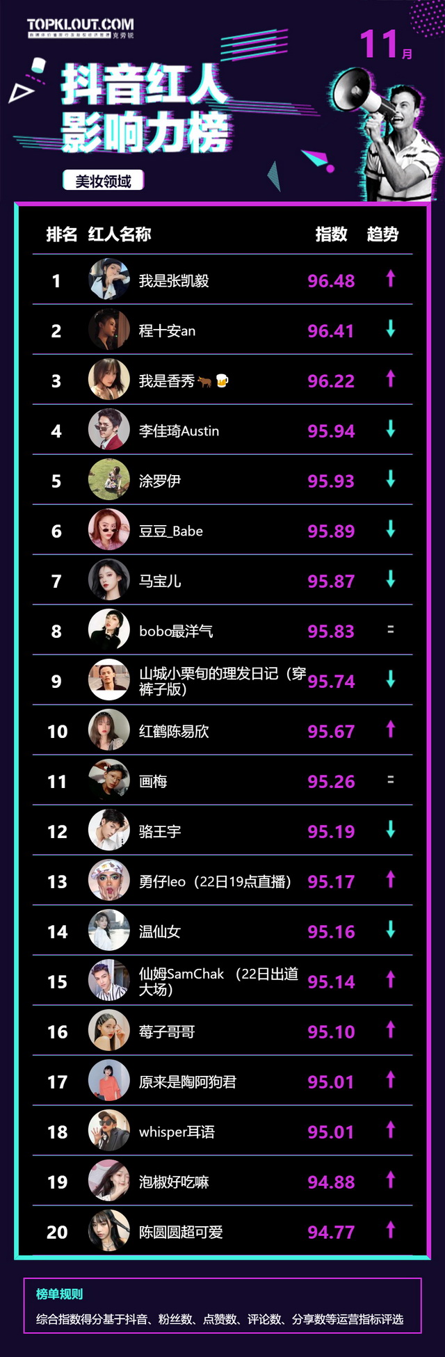 11月《抖音红人影响力榜》终于来啦!