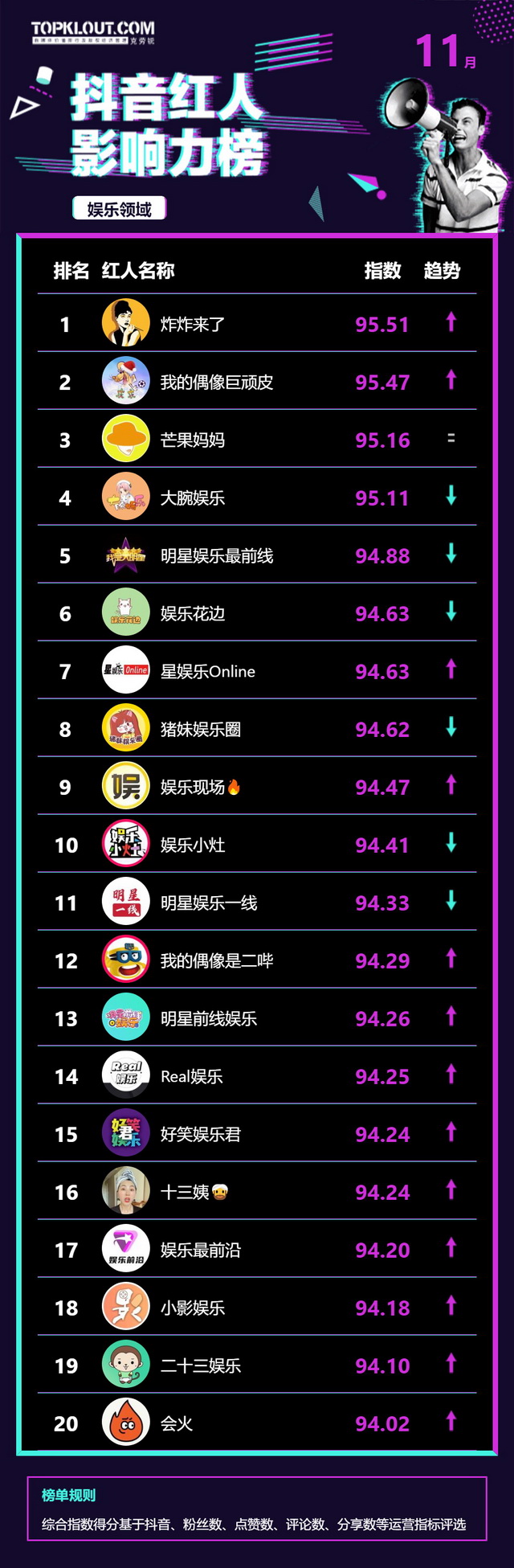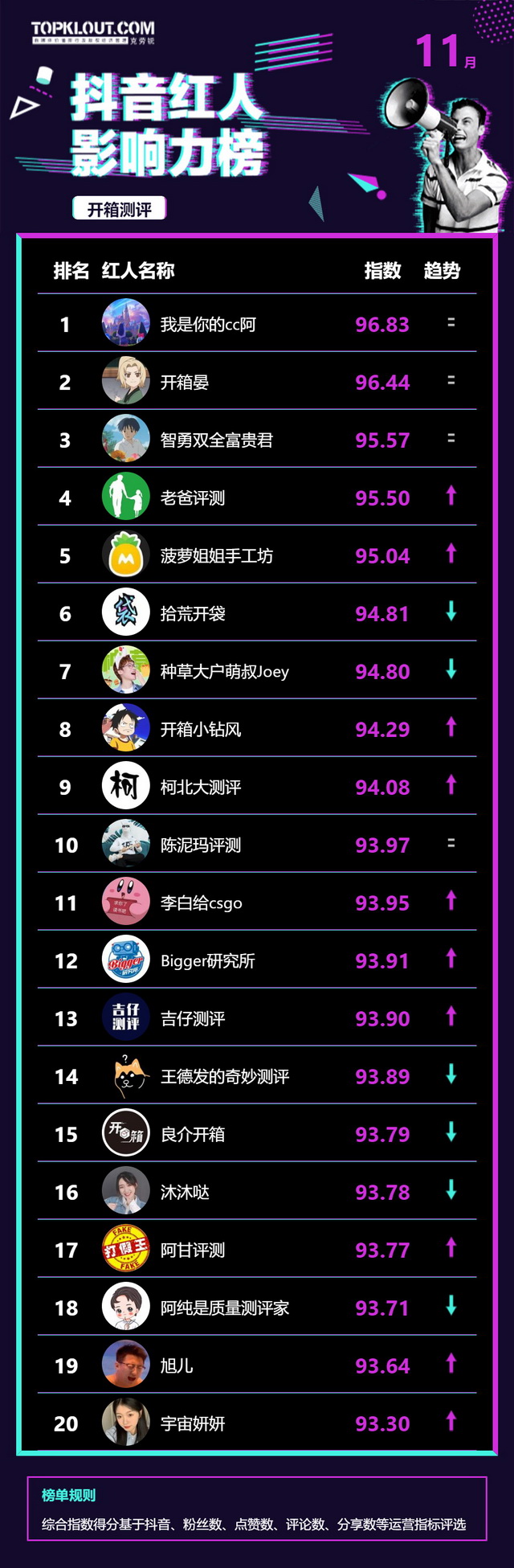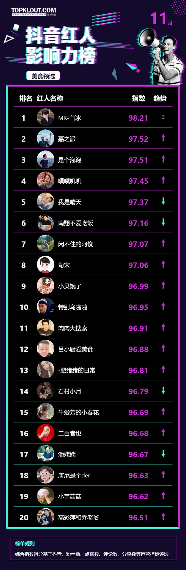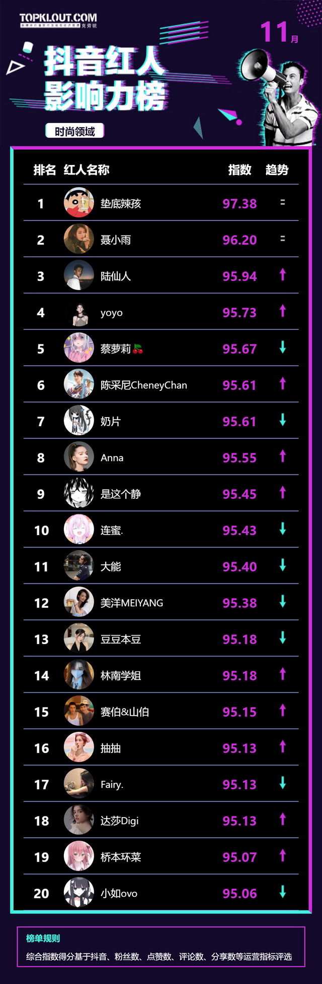 11月《抖音红人影响力榜》终于来啦!