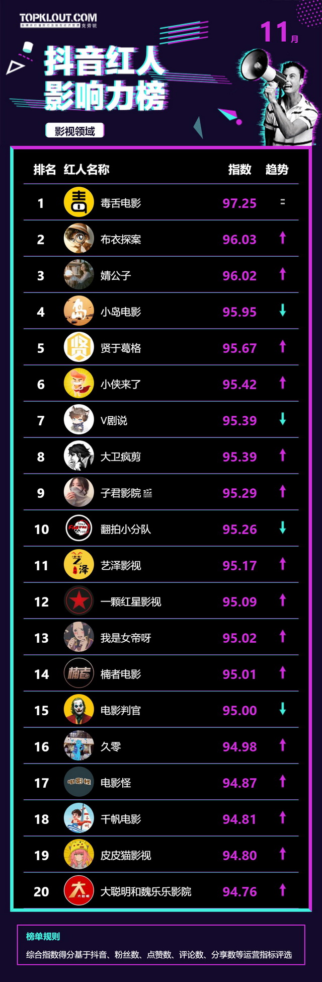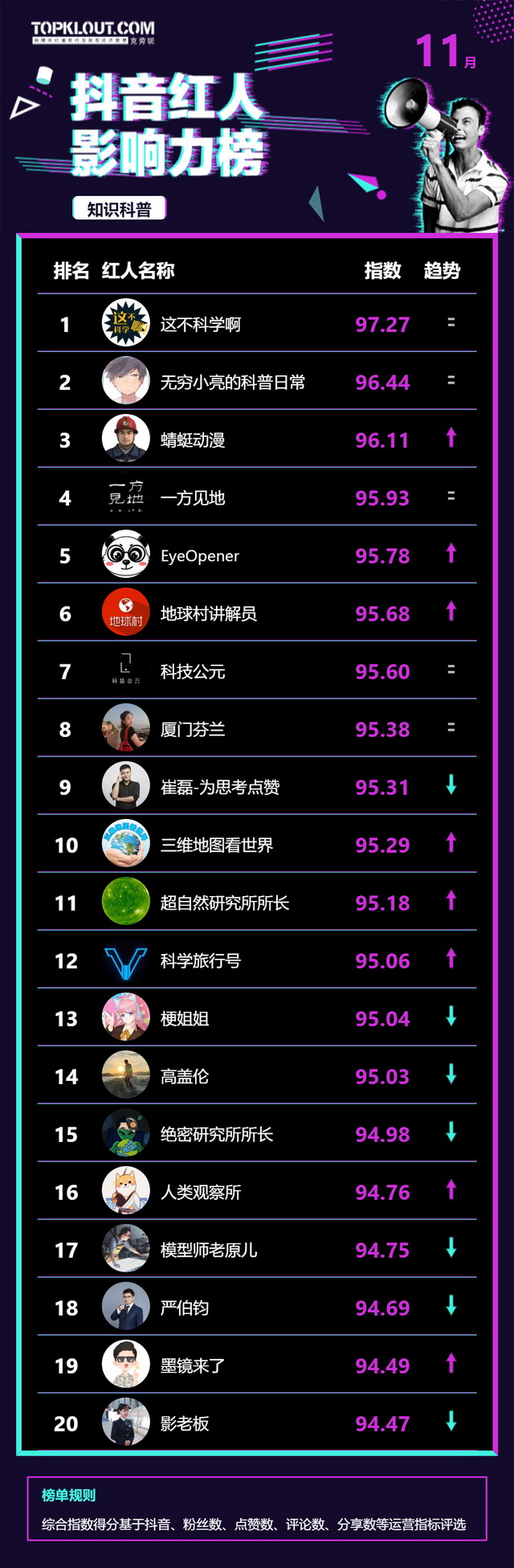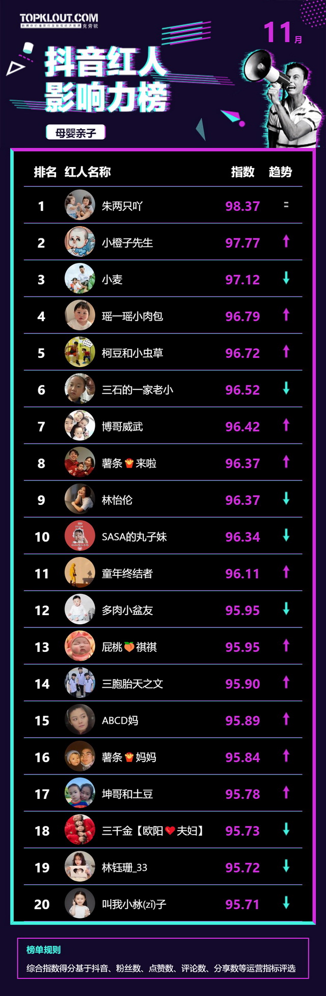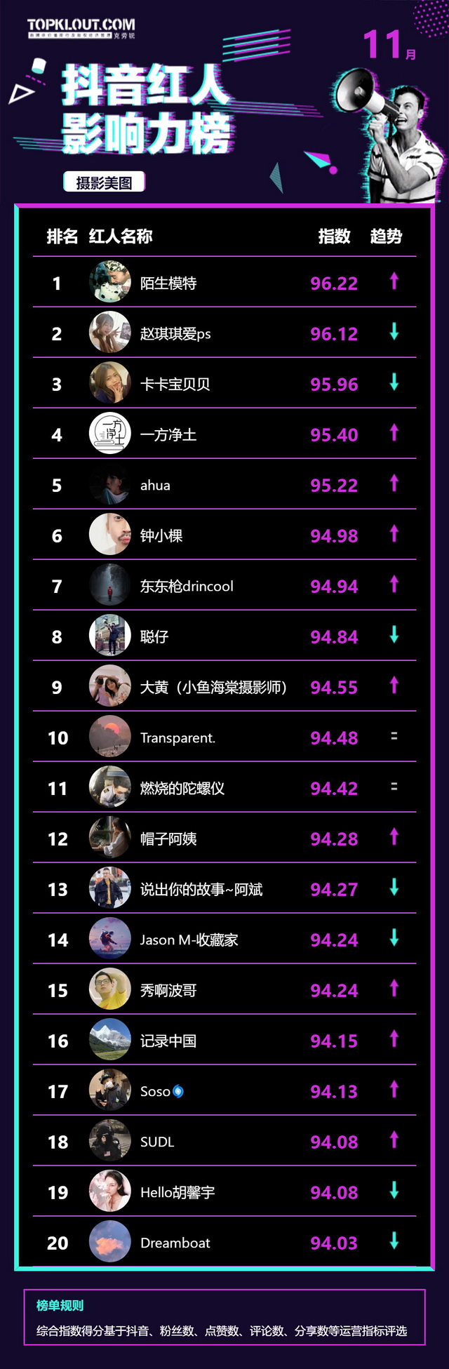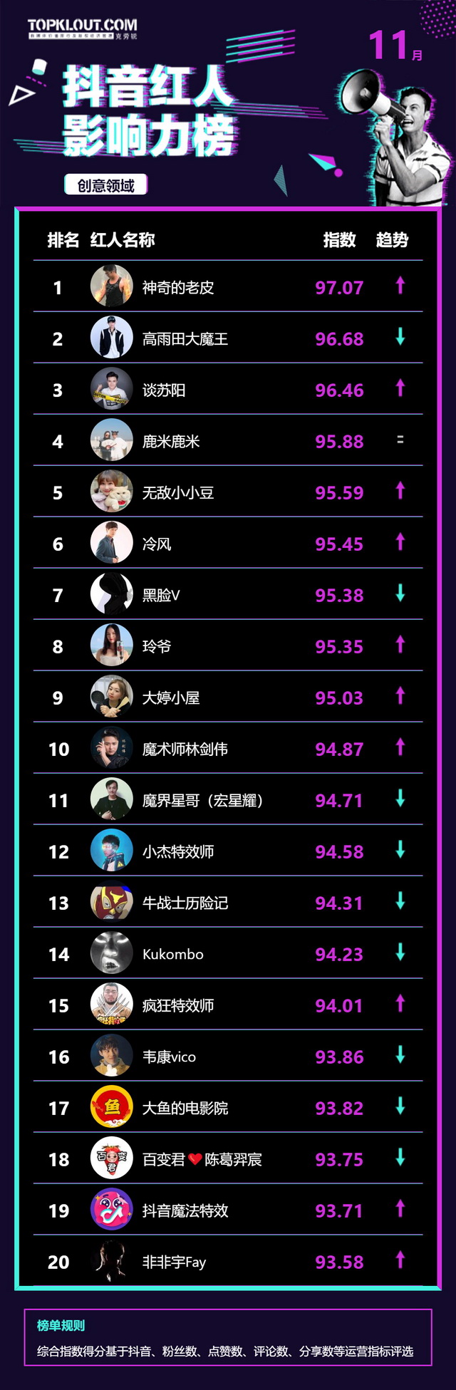 11月《抖音红人影响力榜》终于来啦!