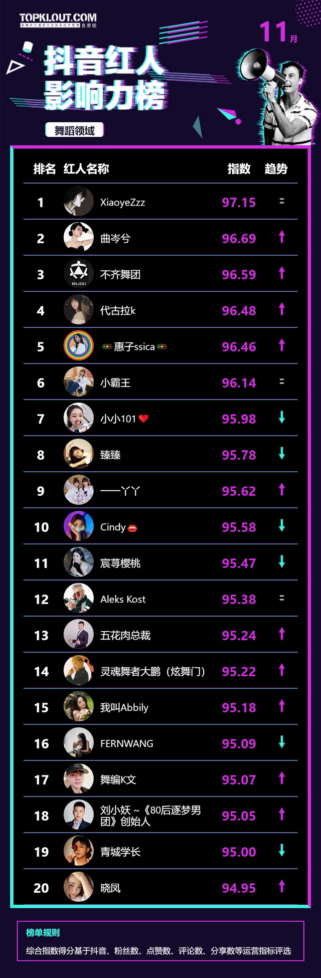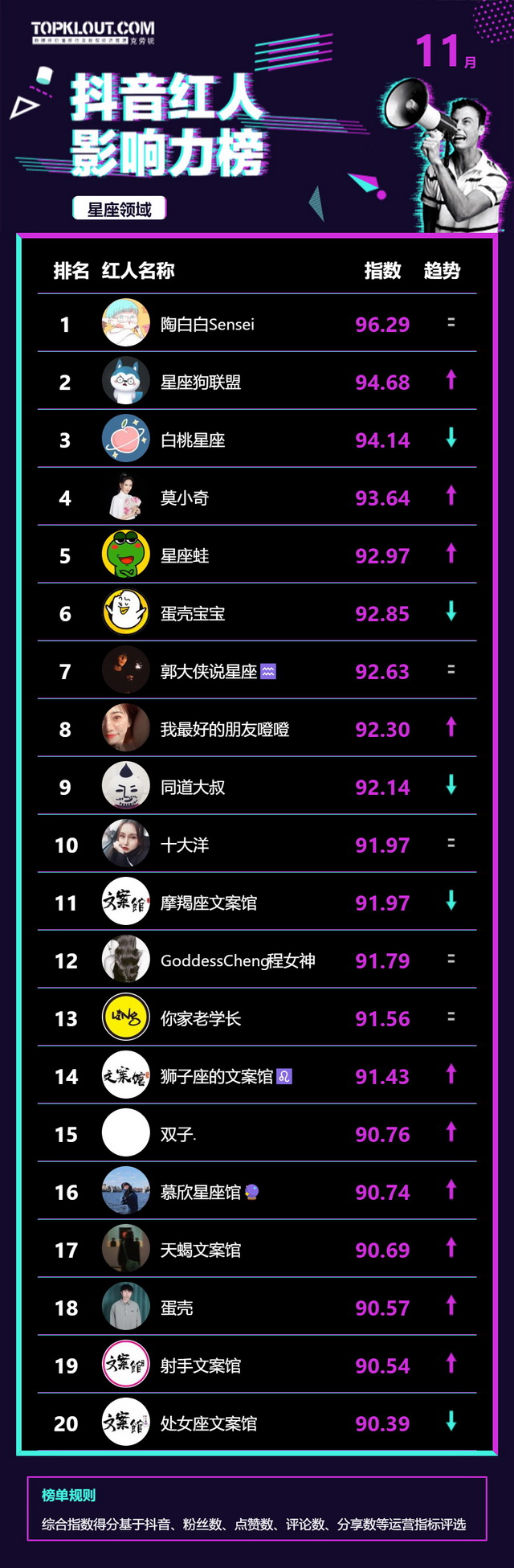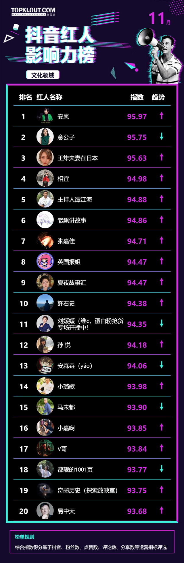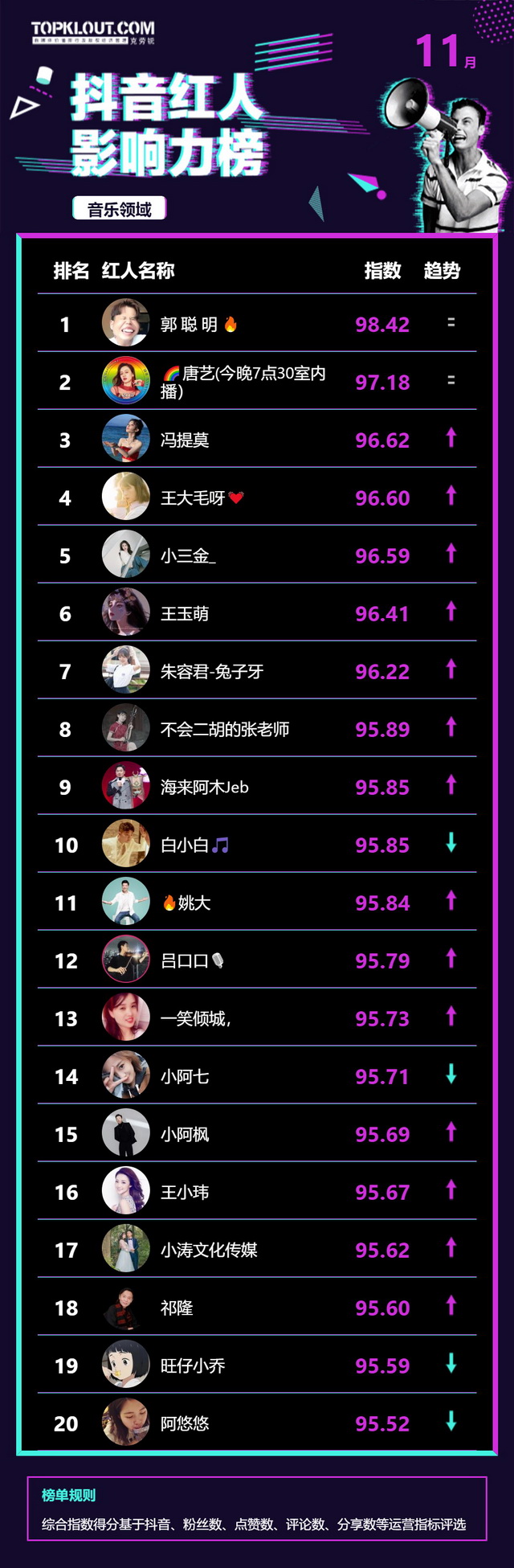 11月《抖音红人影响力榜》终于来啦!
