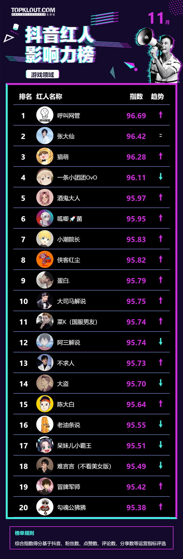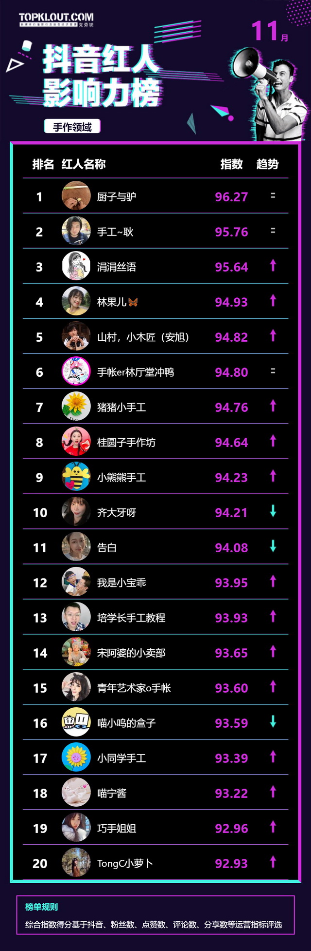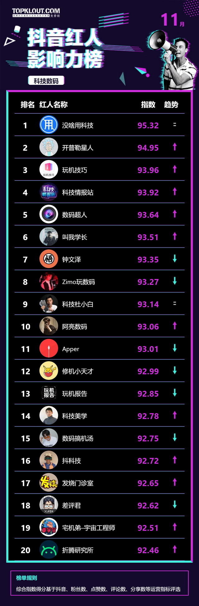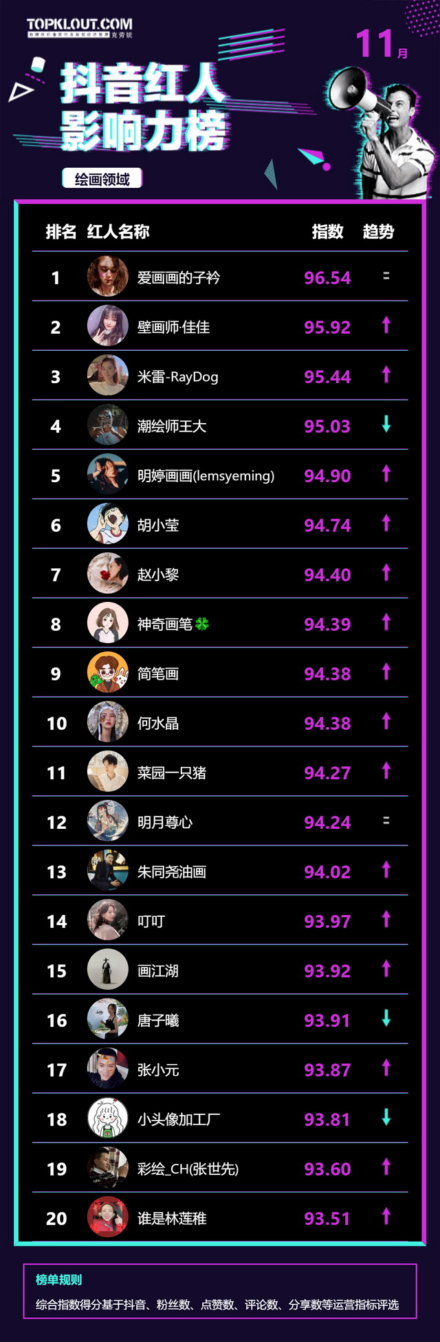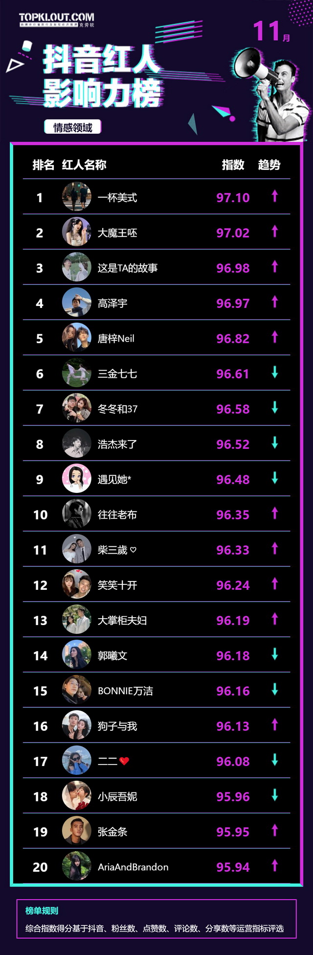 11月《抖音红人影响力榜》终于来啦!