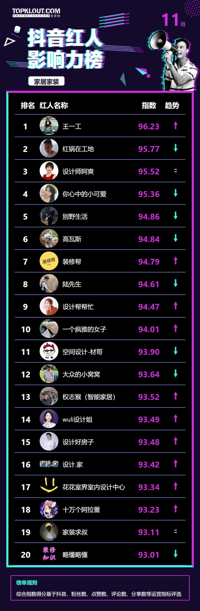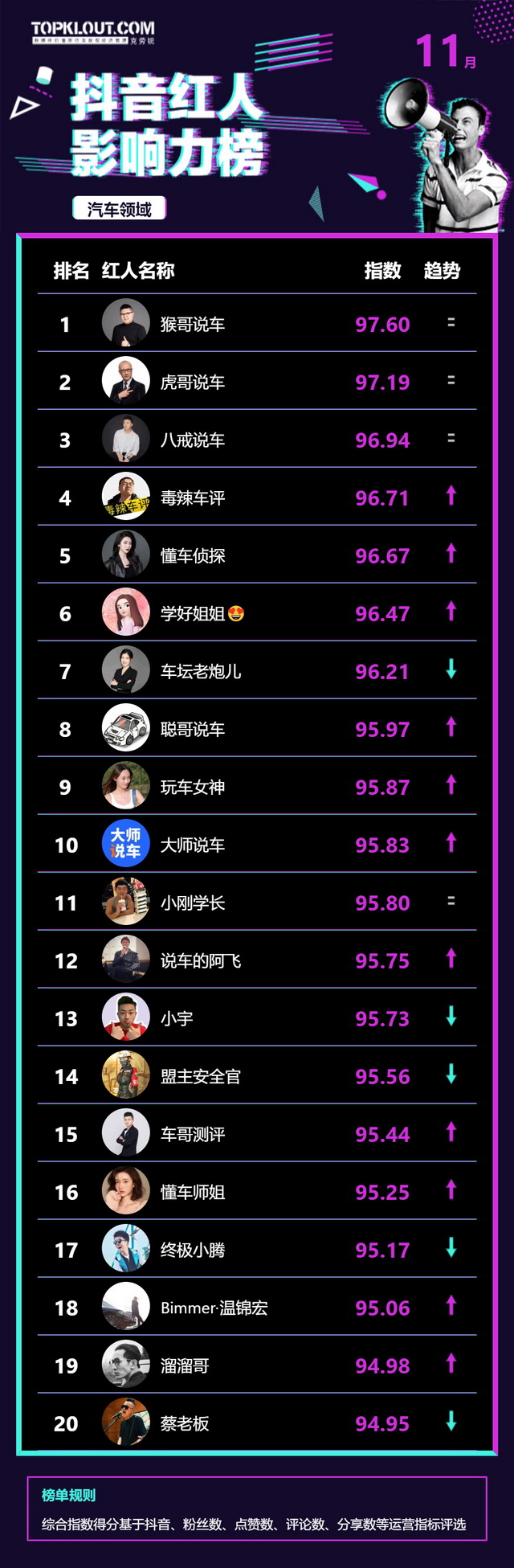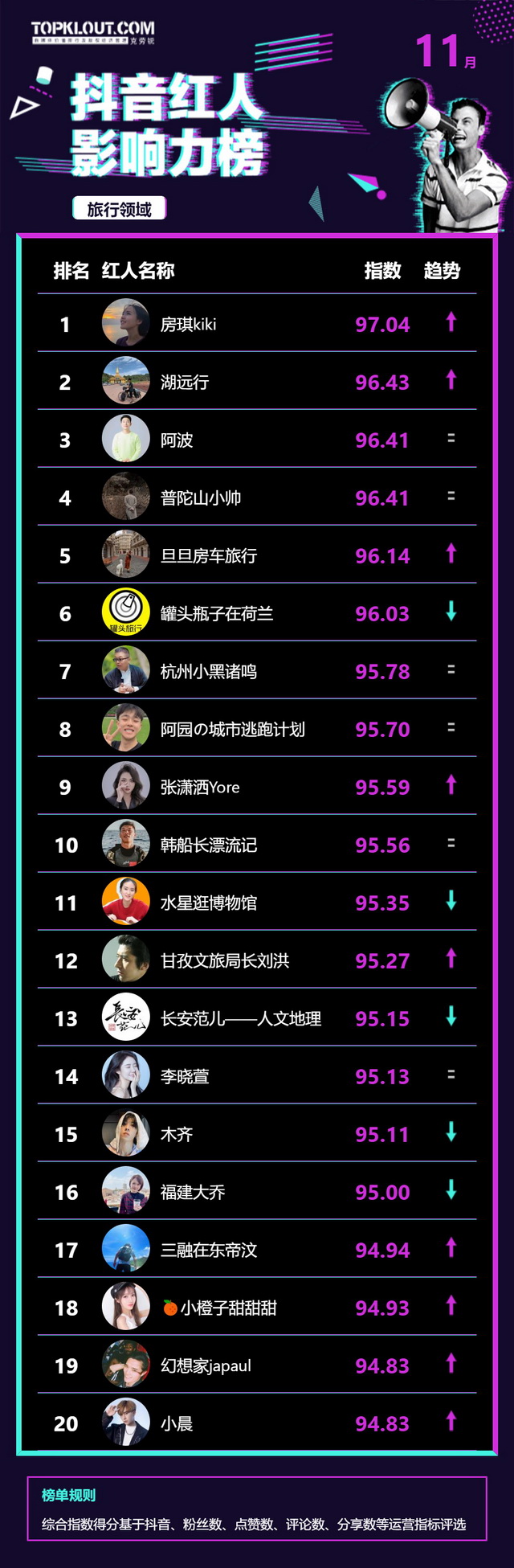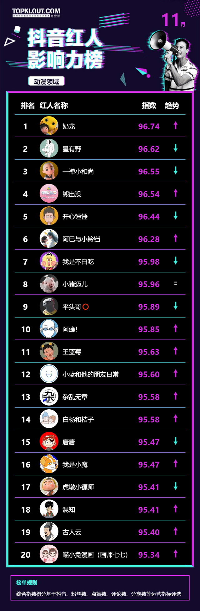 11月《抖音红人影响力榜》终于来啦!