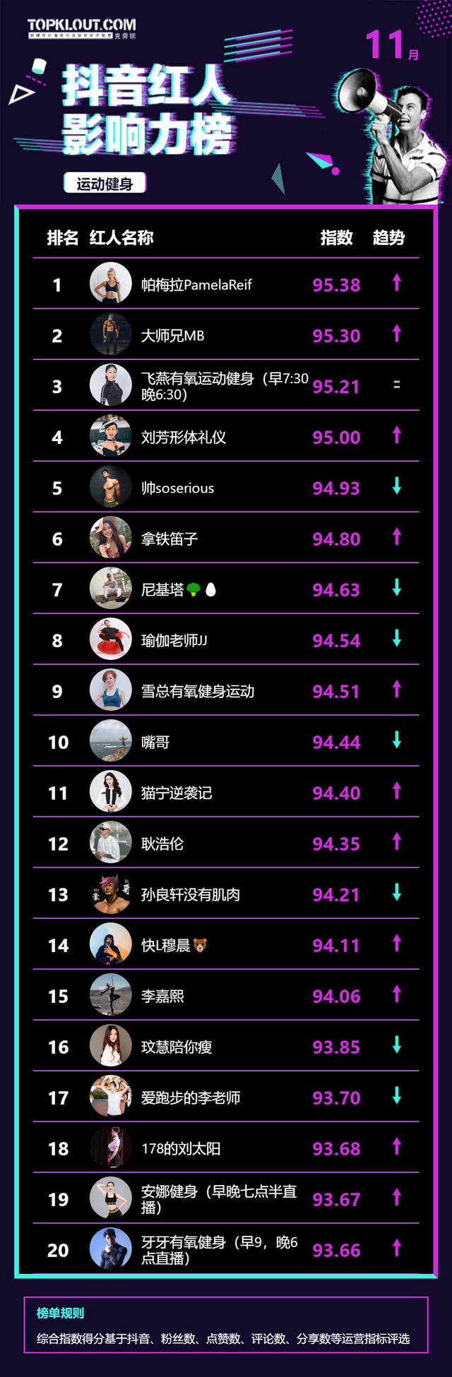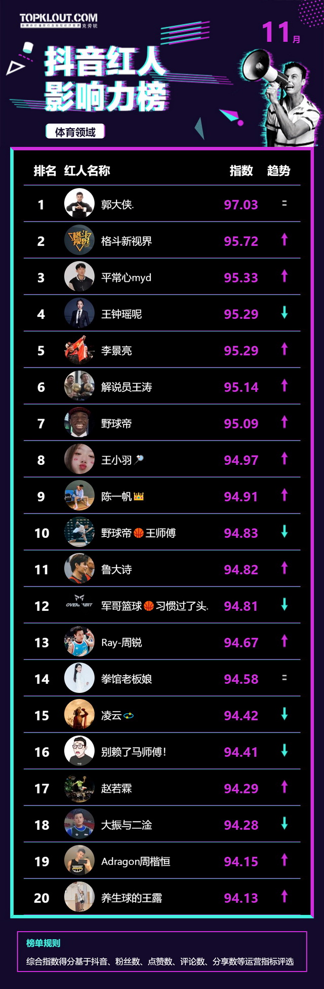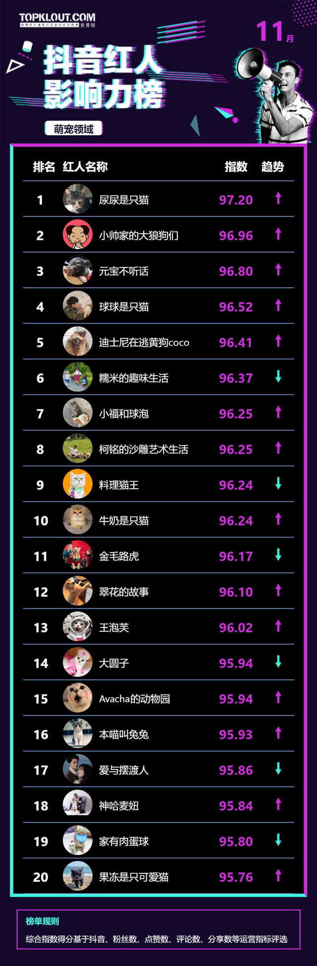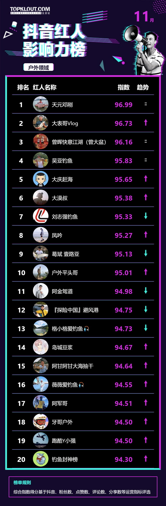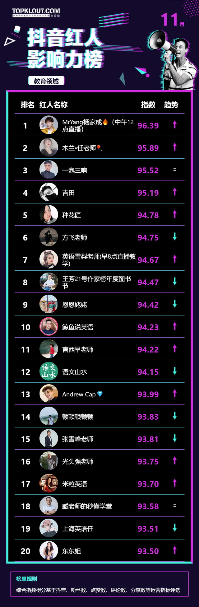 11月《抖音红人影响力榜》终于来啦!
