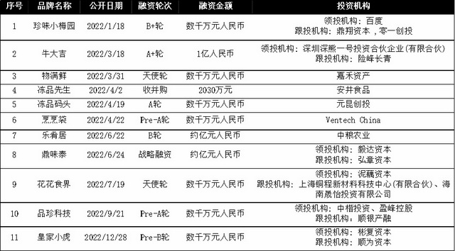 表11:2022年获得千万级及以上融资的预制菜品牌
