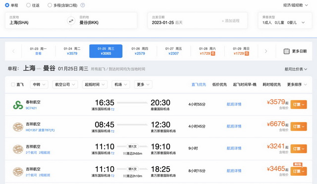 宇哥补充,“不止班次少,而且因为运力供不应求,导致目前机票价格也相对偏高,短期内会遏制部分出游需求。”以1月25日票价为例,记者也观察到,近期厦门高崎国际机场直飞曼谷的航班,每日仅1班次,单程票价接近3000元。上海、广州直飞曼谷的单程票价在3000元—7000元不等,社交媒体上,以泰国机票为关键词进行搜索,匹配到的多是“泰国机票为什么这么贵”“泰国机票什么时候买便宜”“泰国机票什么时候降价”类似词条。