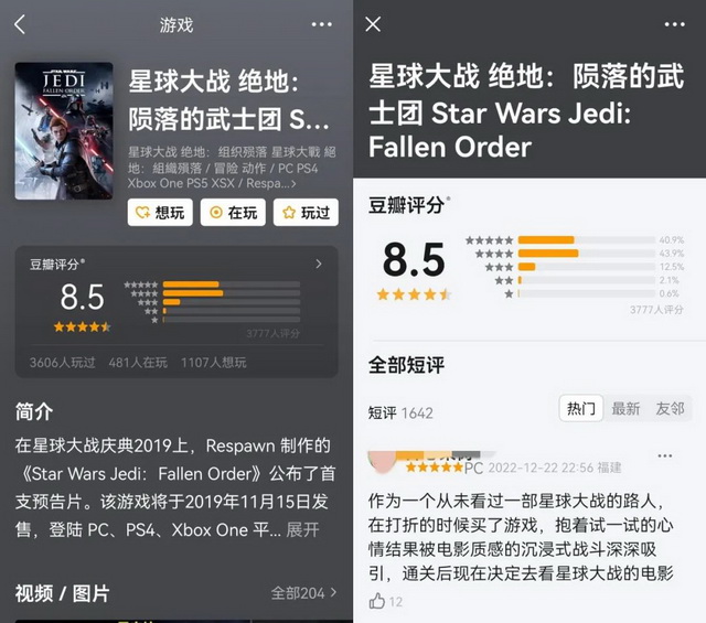 《星球大战》几部续作口碑比不上前作,但丰富的周边衍生品吸引了越来越多的新人“入坑”,在社交平台上,就有不少《星球大战》游戏玩家表示没有看过相关的电影,是通过游戏了解到这个IP“入坑”的,进而成为了忠实粉丝。