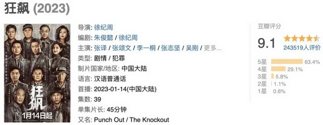 与热度一同飙升的还有口碑。《狂飙》豆瓣开分高达8.7,截至发稿前评分已经升至9.1,有超过23万的网友为该剧评分——整个2022年,也只有一部《大山的女儿》解锁国产剧豆瓣9分成就。