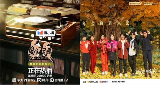 音综方面,芒果TV的《时光音乐会》和爱奇艺《我们民谣2022》成为一月音综中的佼佼者,前者以1239的播放指数收获9.24%的市占率位列榜单第二名;后者以5.22%的市占率排在第七名。