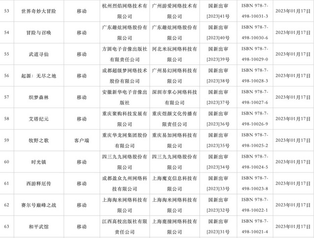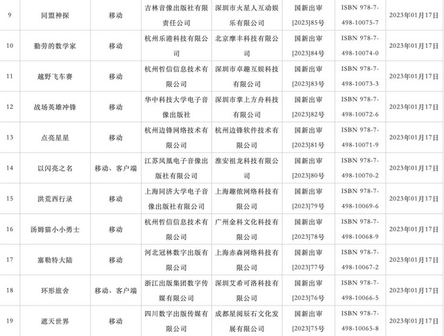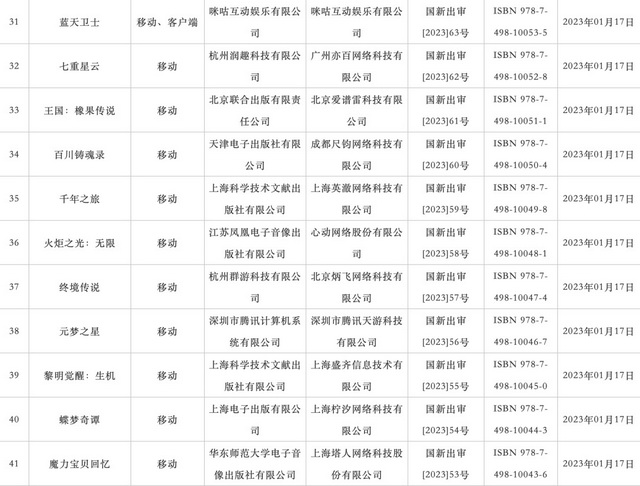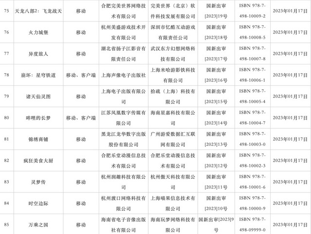 这批版号中比较值得关注的有:米哈游的回合制冒险策略游戏《崩坏:星穹铁道》,游戏已经过两轮测试,TapTap评分8.6,全网预约人数已破千万。拿到版号后《崩坏:星穹铁道》也加快了宣传进度,大年初三发布的新PV在B站已有近400万播放量;腾讯光子自研的开放世界生存游戏《黎明觉醒:生机》,游戏基于虚幻4引擎开发,强调“无缝大世界”和丰富的生存及战斗体验,目前TapTap评分8.0;心动网络的《火炬之光:无限》,一款IP授权的类暗黑ARPG手游,目前TapTap评分7.8。