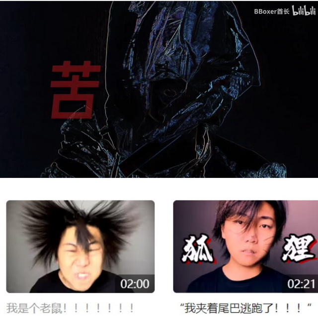 在BBox实力上,其不仅能用BBox模仿出生活中的各类声音,也能搭配混音翻唱热门歌曲;而在视频制作能力上,BBoxer酋长的花式剪辑手法与表现力为视频增色不少。比如在《我是个老鼠!!》与《“我夹着尾巴逃跑了!!”》这两期视频中,其通过多变的剪辑手法令视频风格变得更潮流也更酷,而BBox与个人演唱的功底也尽显,除了拿下近百万播放外也俘获了大量粉丝。