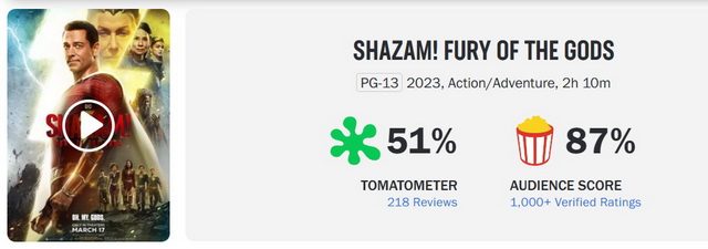 不过,首周过后《雷霆沙赞!众神之怒》(以下简称《雷霆沙赞2》)的表现遭遇滑铁卢,在北美仅拿到3千万美元的周末票房,还遭遇主流媒体的“烂番茄”待遇,最终票房预计将在前作的基础上大幅下滑。