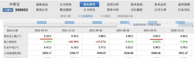 与董事长的套现相反的是,据市场数据显示,2021年一季度,中青宝有散户4万人,到了2021年底变为了9.4万人,直到2022年一季度,依然有9.2万散户。一个合理的推测是,这多出来的五万人冲着元宇宙的概念涌入,但并没有能在合适的时间退出。
