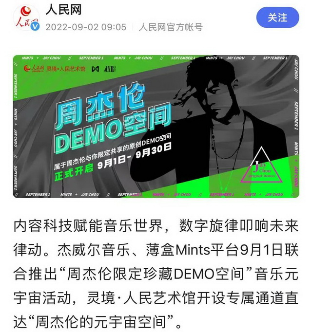 2022年底,周杰伦还通过运营自己的IP推出了数字藏品,名为Demo空间。其玩法类似盲盒,用户可以通过购买不同价格的钥匙打开这个空间,并以数字人的身份边听音乐边挖彩蛋。上线一天后,Demon空间售出了近6万个,以最低价格20元计算,销售额也达到了120万元左右。