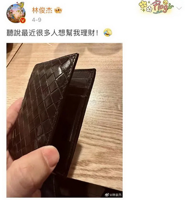 林俊杰则在社交平台发布了自己的钱包照片,表示“听说最近很多人想帮我理财”,疑似回应这条消息。