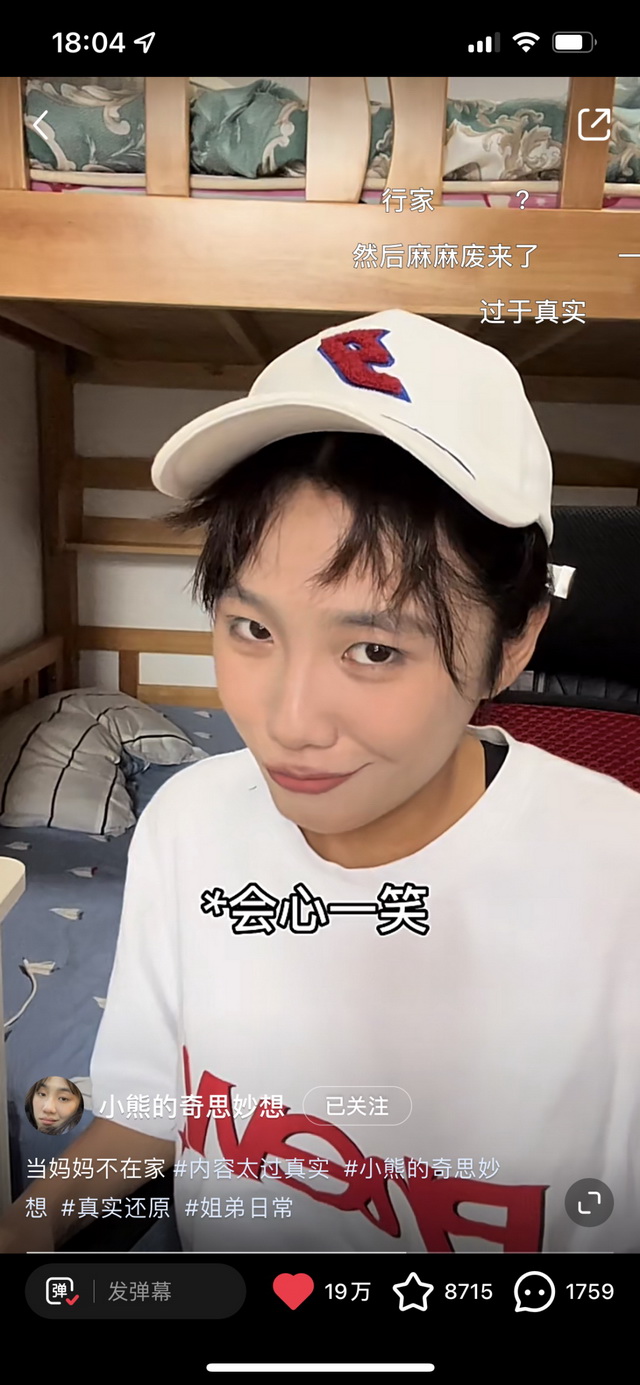 在家庭场景系列内容中,小熊既扮演妈妈又扮演她的弟弟,将妈妈勤劳、弟弟又倔强又怂的特点展现的淋漓尽致。