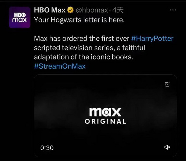 在官宣当中,华纳表示,剧版《哈利·波特》将“开启不可思议的冒险,以全新的方式认识霍格沃茨,带来全新一代哈迷”, 更会融入25年来的资深哈迷们所热爱的细节、角色和地点。剧版《哈利·波特》将在Max平台(即原HBO Max)播出。