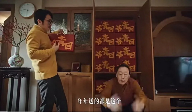 这不就是2019年《都挺好》里的“作爹”温情版吗?多年戏骨无人知,一朝“作爹”天下闻。2019年,好几个广告都顺着“苏大强”让人印象深刻的性格找上门来。他在剧里精打细算,爱财如命,恰好符合“聚划算”和“银联”想要达成的“划算”效果,年底的“士力架”广告里,他还复刻了倒在地上“想喝手磨咖啡”的名场面。