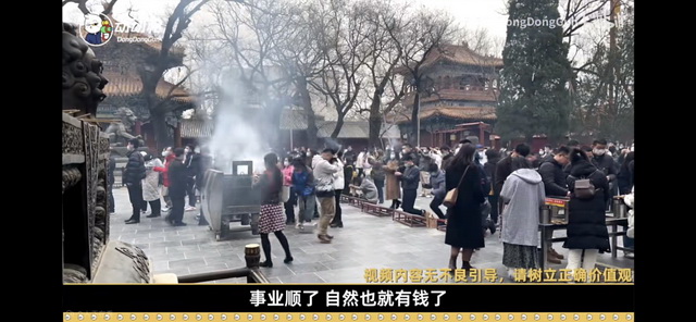 @动动枪DongDongGun在“压力太大前景堪忧,年轻人开始走进寺庙”这期视频介绍了几个爆火的寺庙,其中包括求姻缘的杭州灵隐寺、求学业的成都文殊寺、求财求事业的北京雍和宫。