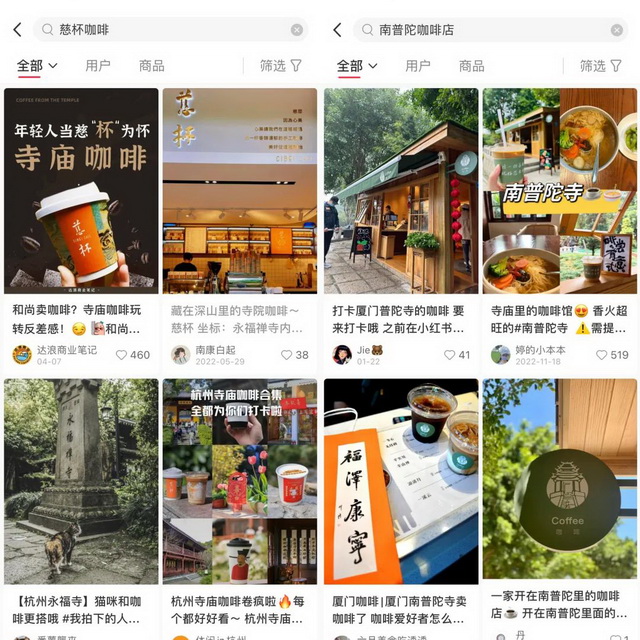总的来看,各种美观实用、寓意吉祥的文创产品,在寺庙禅修的经历以及对新鲜事物的探索体验都成为了年轻人的社交货币,并在社交平台形成一种潮流,正是通过“分享内容-吸引用户-再分享内容”的方式,寺庙内容的热度得以持续高涨。