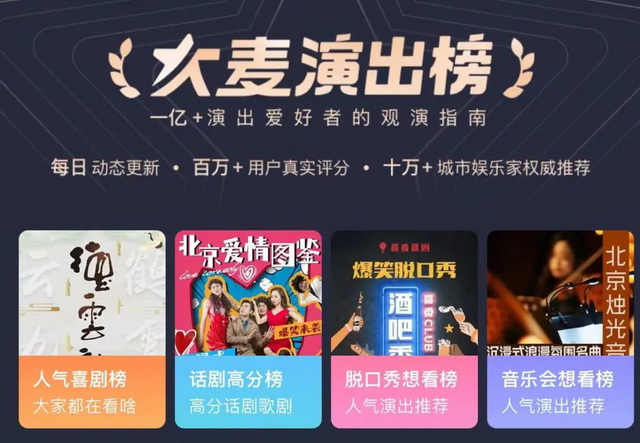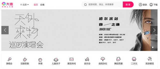 作为中国最早做演出的在线票务平台,大麦2004年成立,至今已有20多年的发展史,从最初只卖主流演出品类的门票,到今天演唱会、音乐节、话剧、音乐剧、livehouse、展览、儿童亲子、脱口秀、体育赛事等演出票“一应俱全”,全品类覆盖。可以说大麦在市场中已经形成了稳固的消费认同。