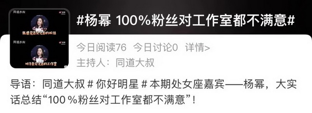 杨幂在接受采访时说过:“百分之百的粉丝都对百分之百的工作室不满意。”