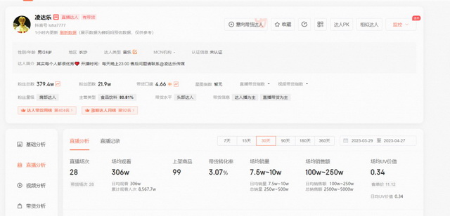 和传统带货主播发布短视频、引流到直播间的卖货路径不同,鹿哈的账号短视频数量很少,只有26条,近一个月内发布短视频数量为0,已发布的内容也以风格、人设展示居多,这和明星账号的运营思维很像。但不同之处在于,鹿哈几乎每天都会开直播,近30天开了28场直播带货,场均销量达到7.5万—10万件,场均销售额在100万—250万元区间。