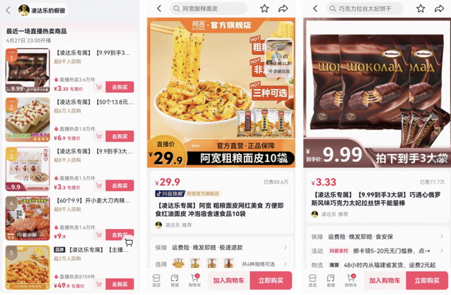 以出镜率很高的奶枣为例,售价9.9元,是鹿哈带货排名第二的商品,近30天贡献了250万—500万元GMV,它的佣金比例达到36%。仅依靠这一款商品,鹿哈佣金就能达到90万—180万元。这些客单价不高的小零食撑起了超千万元的月销售额,过去30天,鹿哈直播带货金额达到2500万—5000万元区间。商家们也乐意为此买单,从鹿哈的带货商品链接上来看,不乏有林家铺子这样的品牌,橱窗中的不少商品也带着“凌达乐专属”的达人标识。